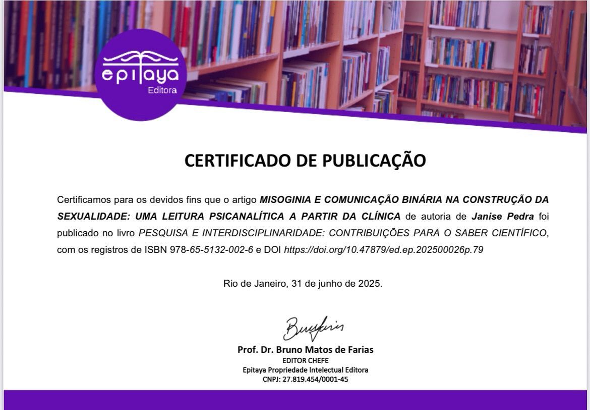 Dra. Janise Pedra recebe mais uma certificação, agora, pela publicação de seu artigo na revista internacional que se segue abaixo. Seu artigo se encontra no capítulo 10 e vale a pena nos inteirarmos sobre o tema.👏